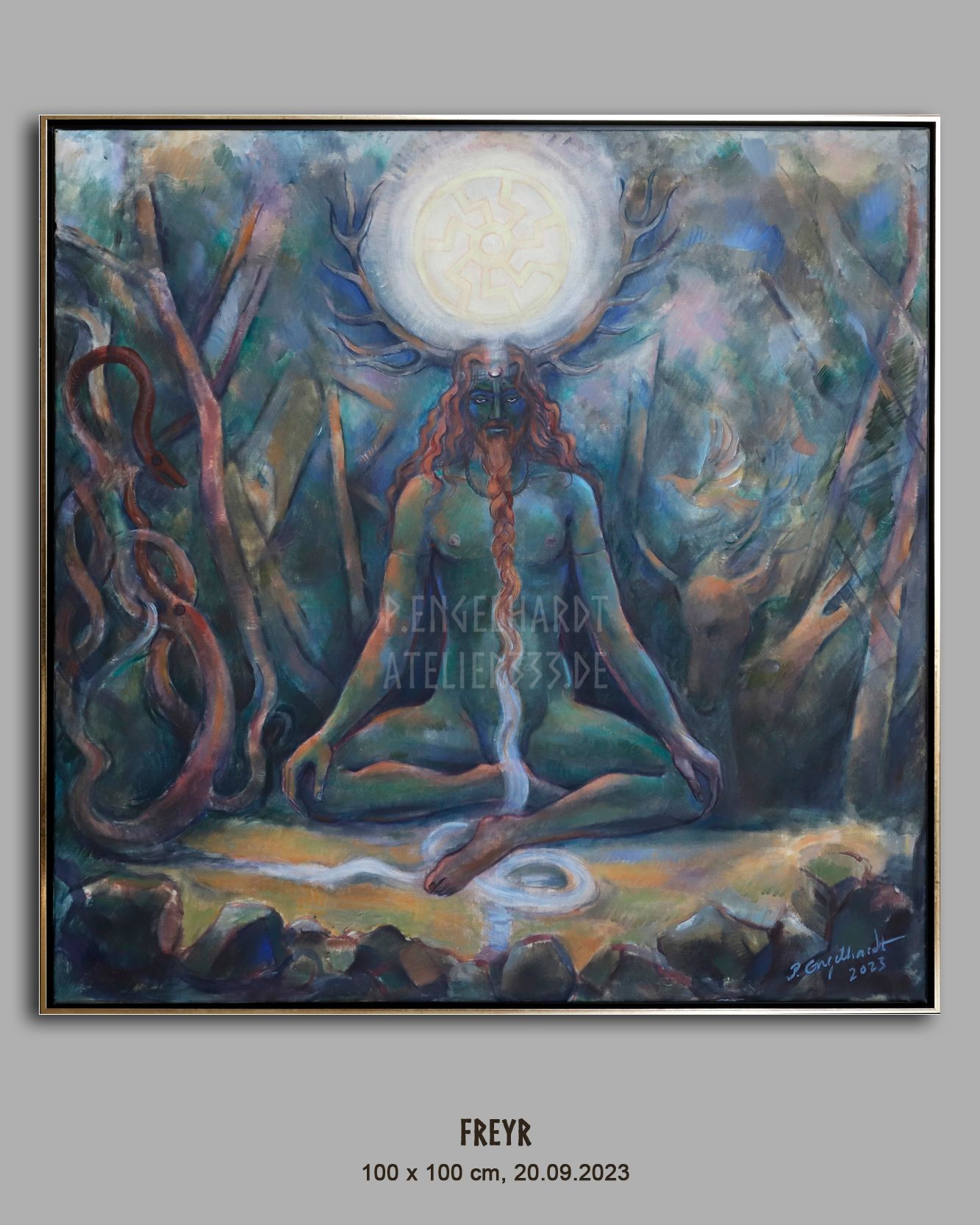 Aktuell inspiriert mich in meiner Malerei die Götterwelt und Mythologie der nordeuropäischen Indigenen, der Kelten und Germanen.