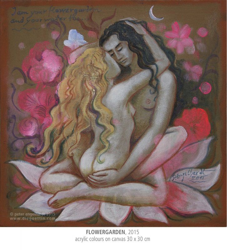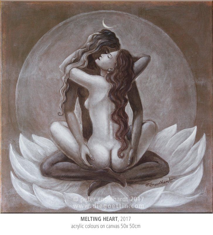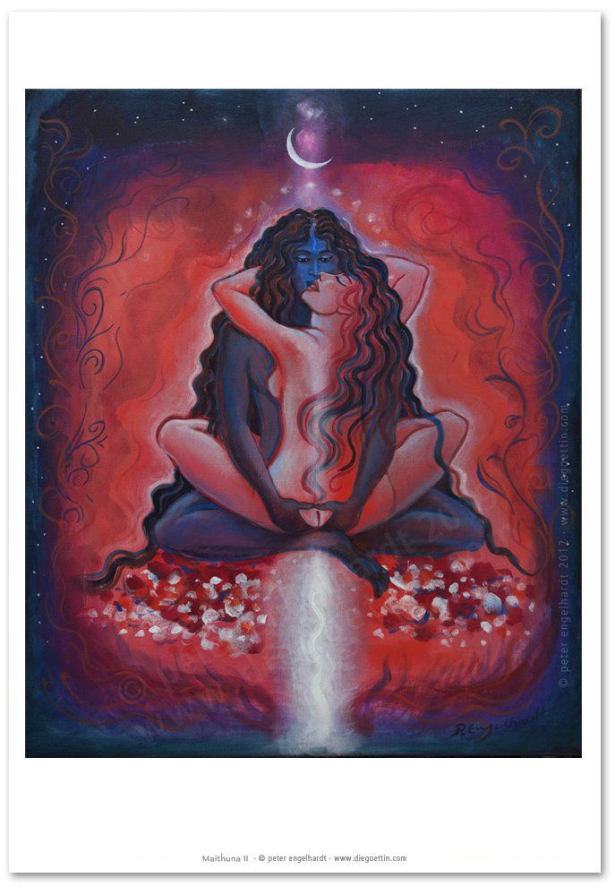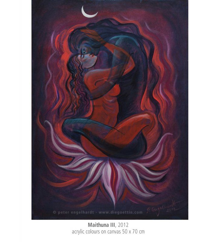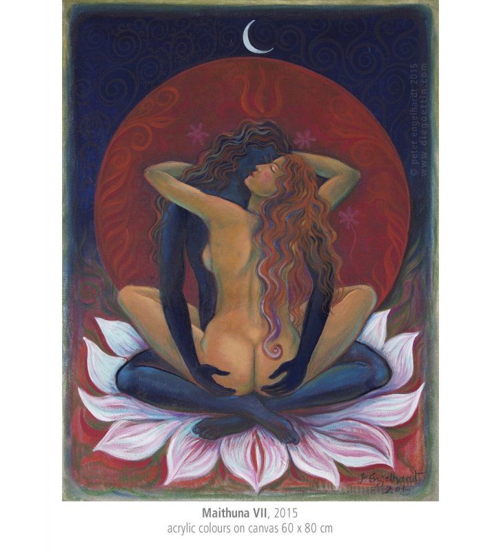 Die Grundlagen dieser Lehre vom Eins-Sein von Energie und Bewusstsein, Shakti und Shiva, inspirierten mich zu vielen Gemälden.